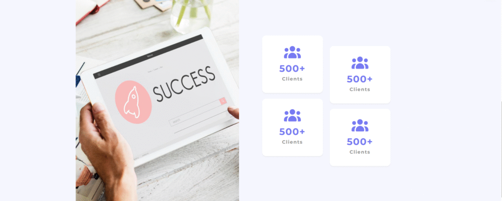 It helps build trust by highlighting key stats like number of clients, completed projects, and growth. This module comes with