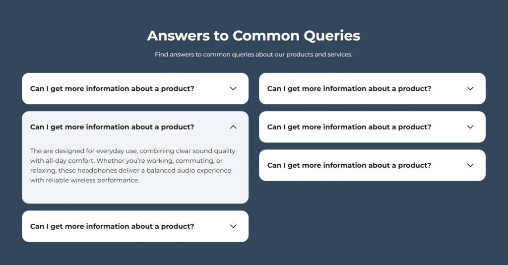 features a simple accordion with a clear heading section for easy content expansion. The second layout uses a two-column structure with a