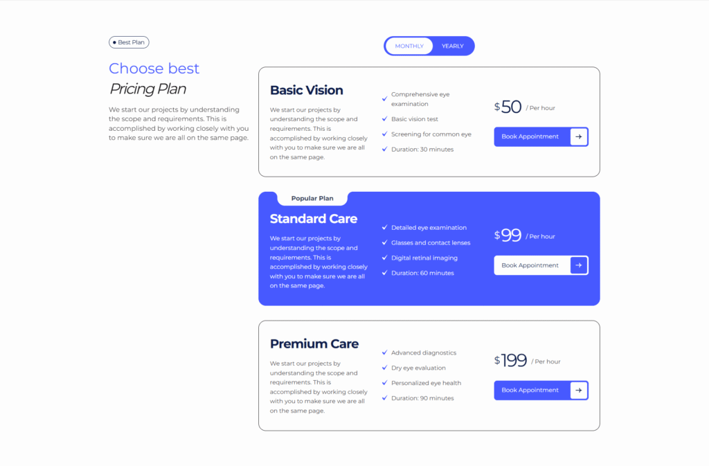 visual design of each plan card based on your needs. The module provides flexible controls for layout structure, spacing, colors,